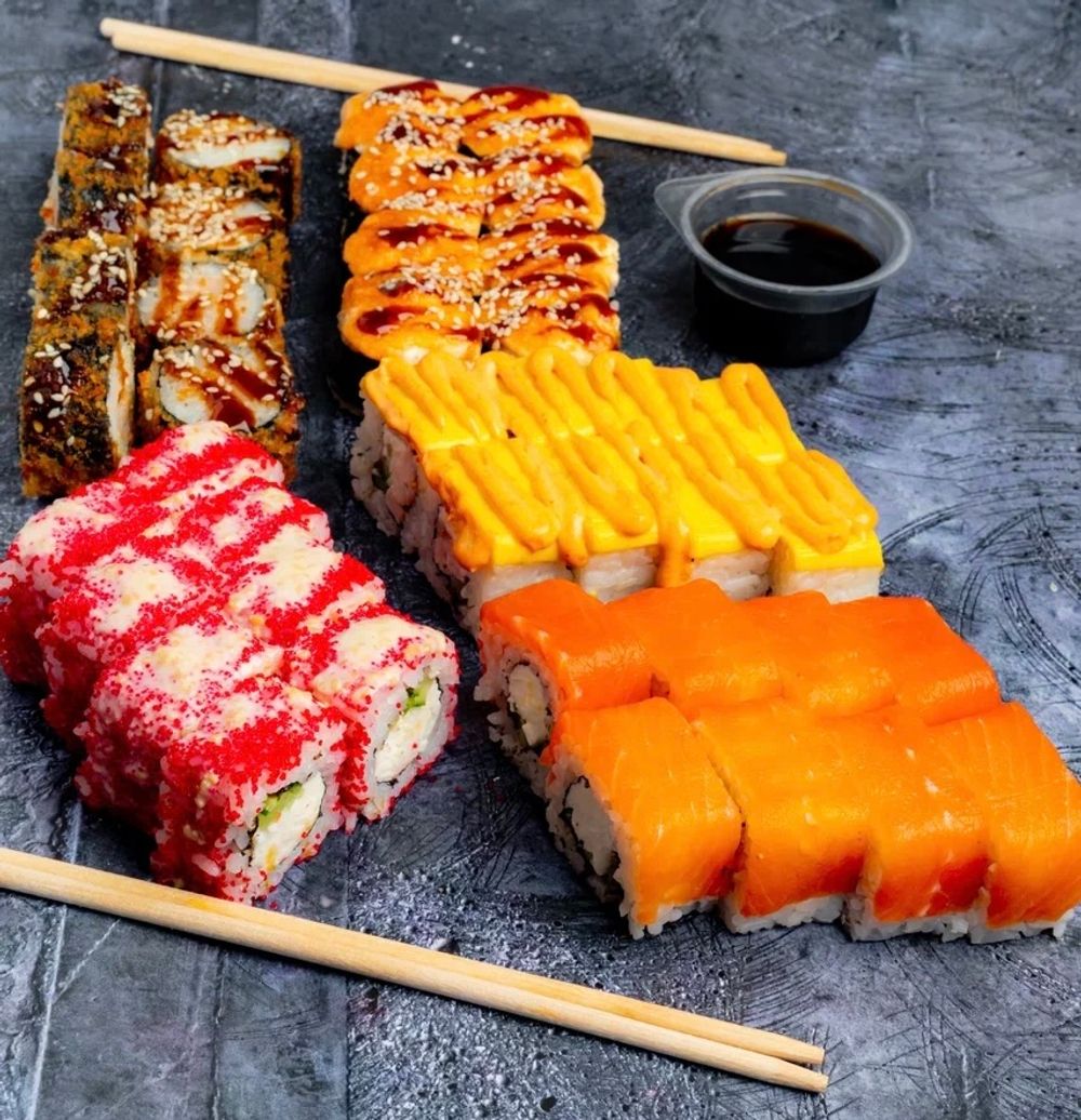 Не прилагается: соевый соус, васаби, имбирь. Прилагается: 3 набора палочек.